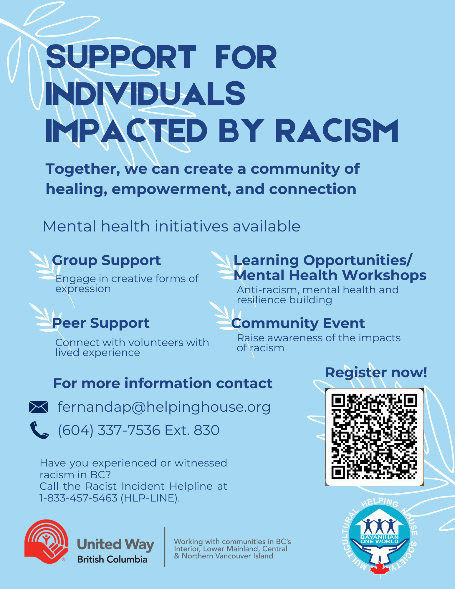 MHHS is offering support to individuals who have experienced racism. We aim to create an inclusive and empowered community where all individuals are valued, heard and supported. The program provides a safe space for all participants, with a focus on mental health, resilience building and raising awareness about the impacts of racism and oppression.
